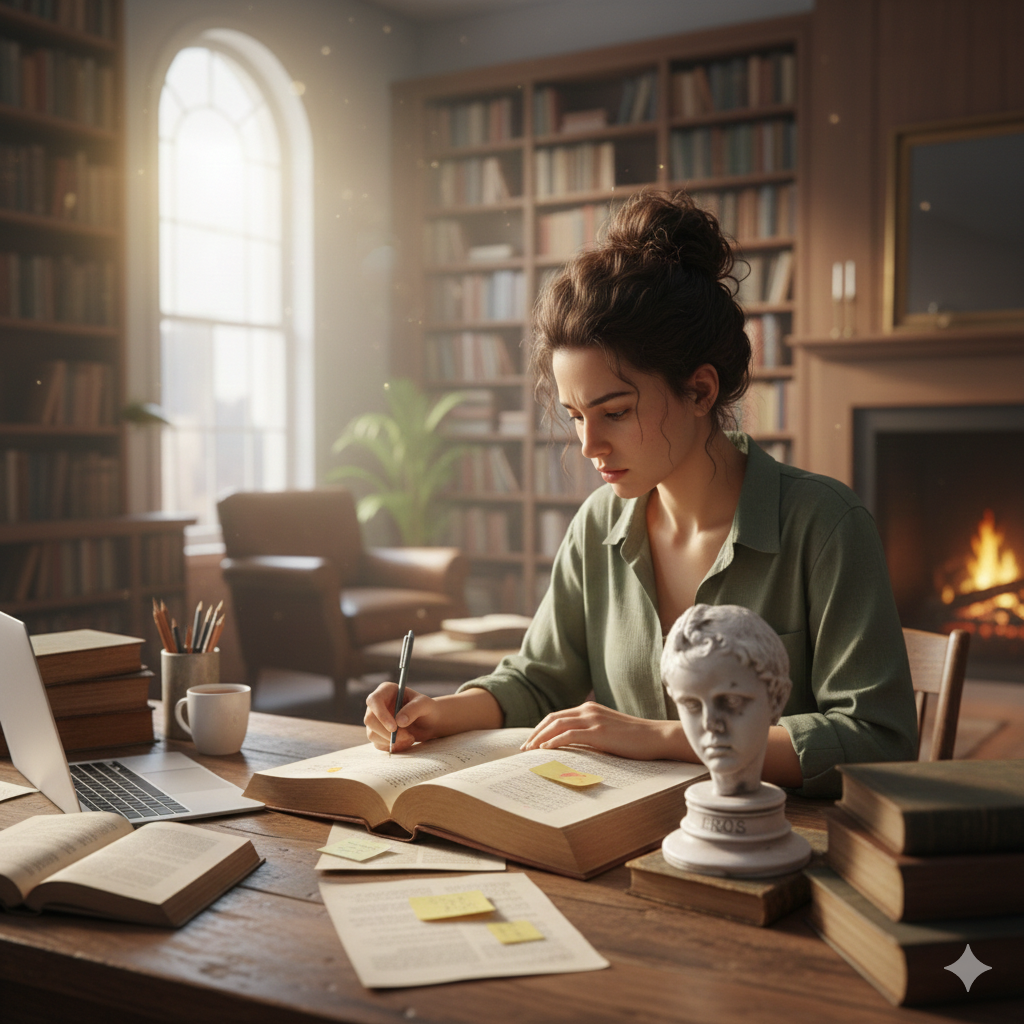 Kütüphane, çalışma masası ve kitaplık üzerinde estetik bir büst olarak sergilenebilir